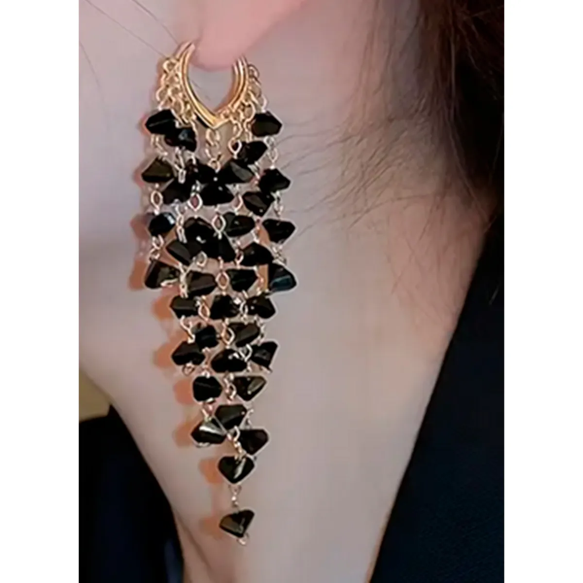 Aros modelo Racimo Piedras Negras, perfectos para complementar tu estilo.