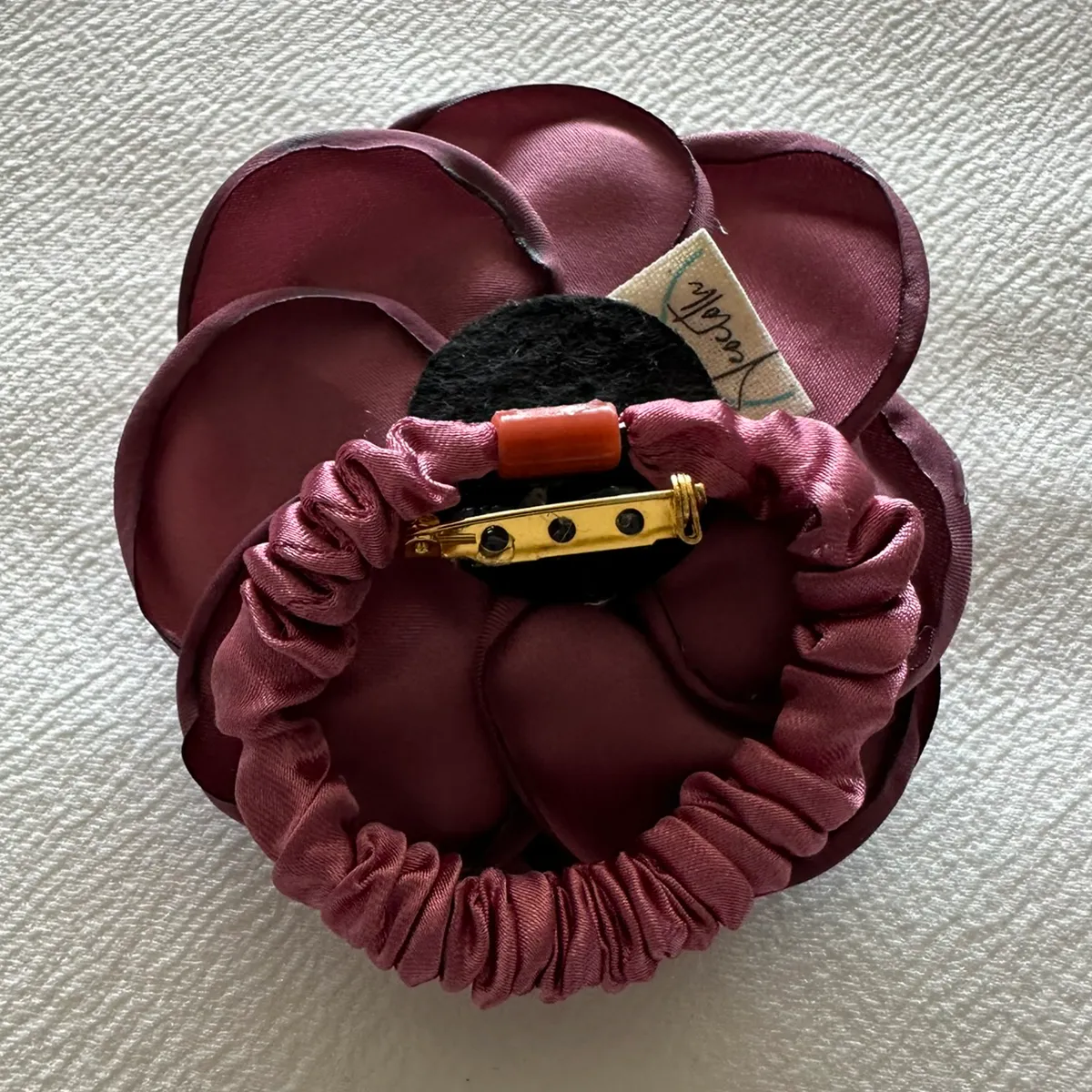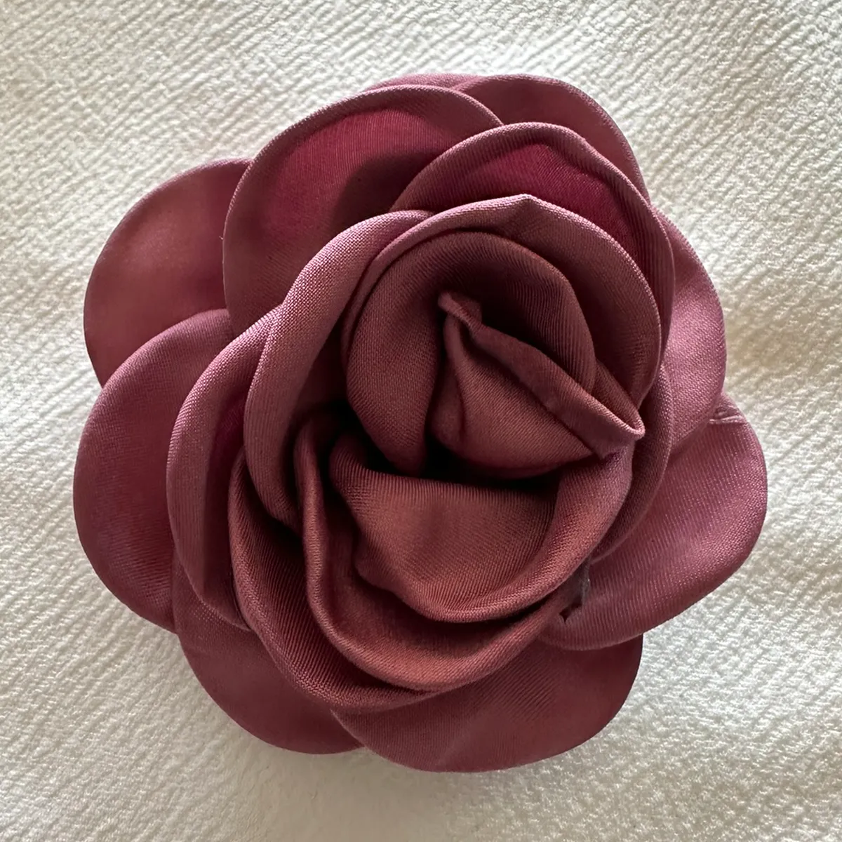 Rosa de tela satinada color palo rosa de tamaño grande, ideal para adornar peinados. Medidas: 9.5 cm
